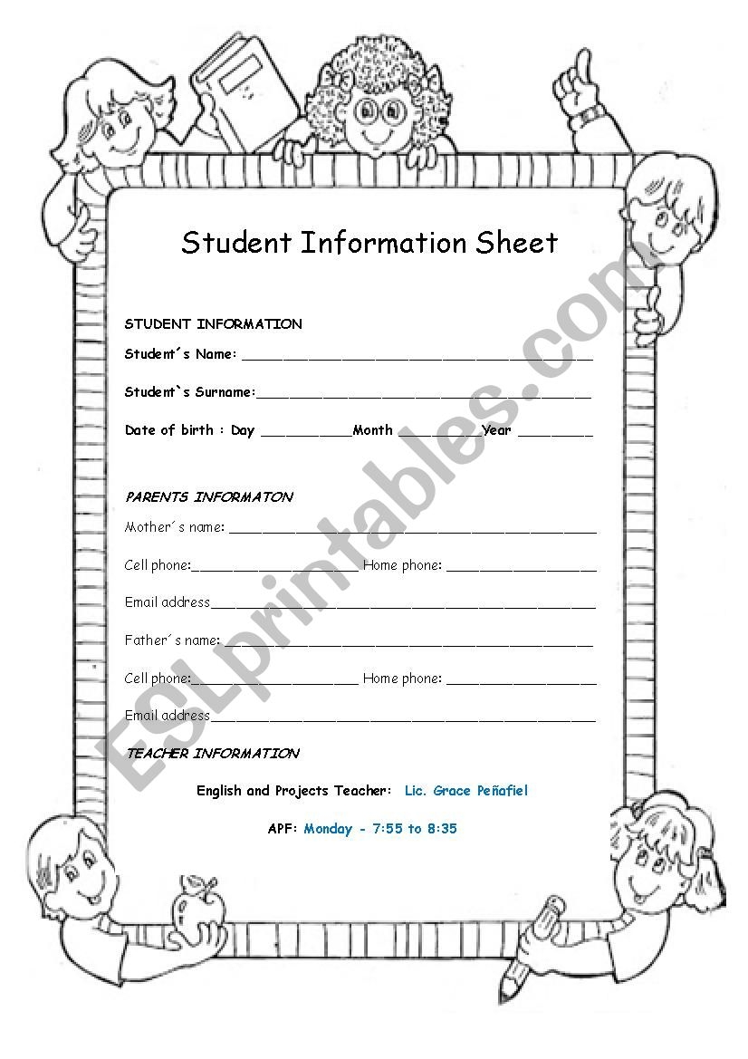 STUDENT INFORMATION SHEET ESL Worksheet By Pogd