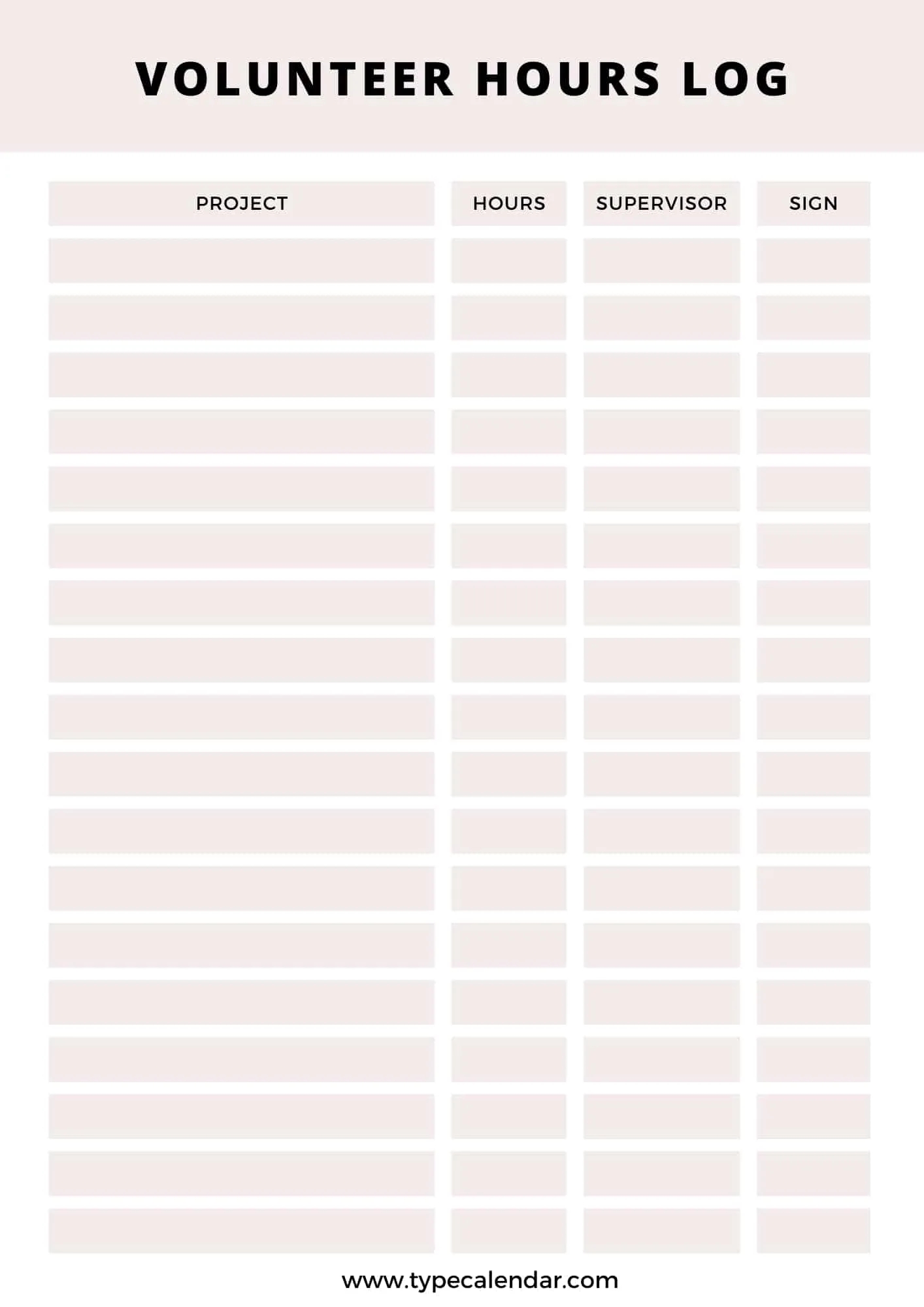 Volunteer Hours Sheet Printable